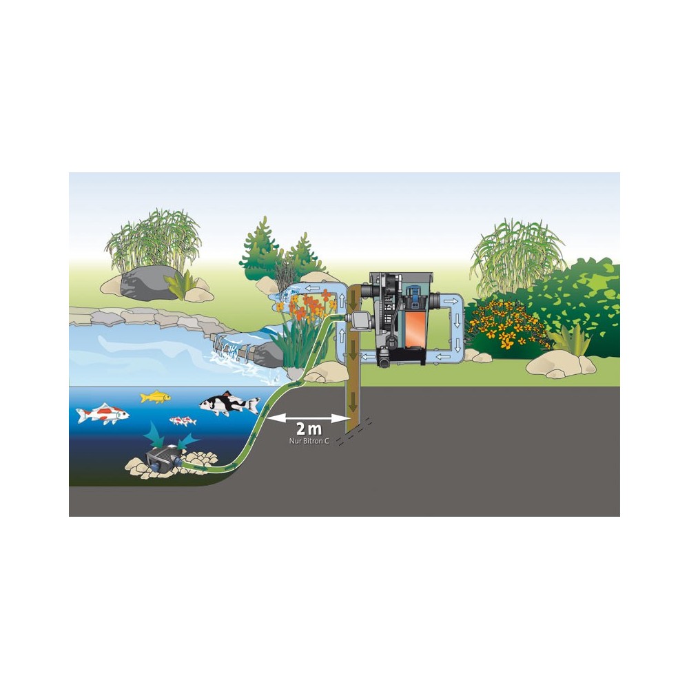 • Il risciacquo viene eseguito con l’acqua filtrata del laghetto , non è necessario un allaccio supplementare dell’acquedotto