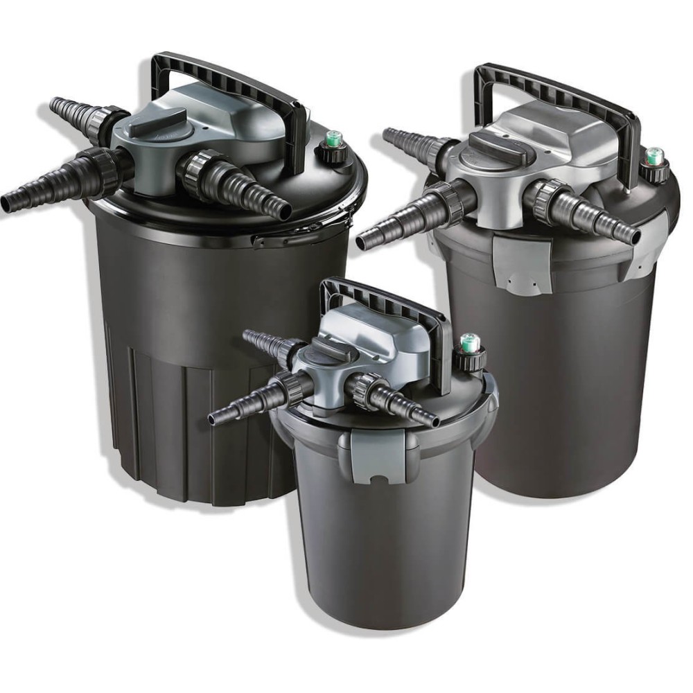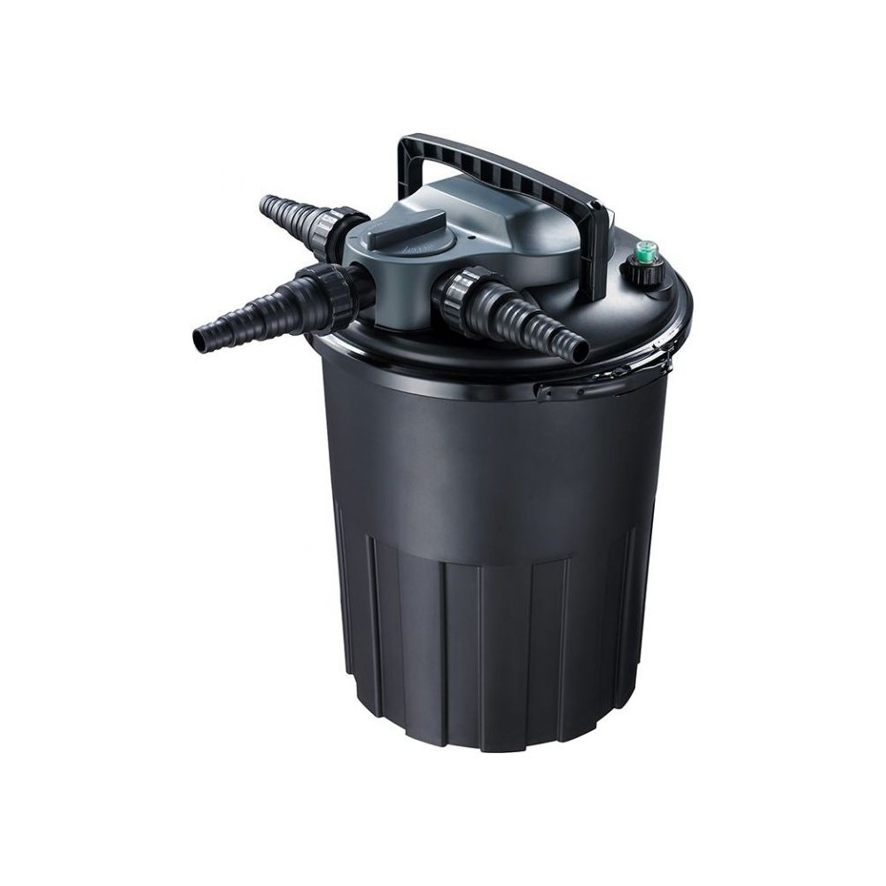 Questo filtro a pressione è compatto ed efficente. E' dotati di spugne, bioball, lampada UV-C integrata e di un praticissimo sistema di pulizia delle spugne che consente di effettuare le operazioni di manutenzione senza smontare il filtro, semplicemente ruotando un selettore ed azionando una maniglia per comprimere le spugne ed espellere tutto lo sporco!