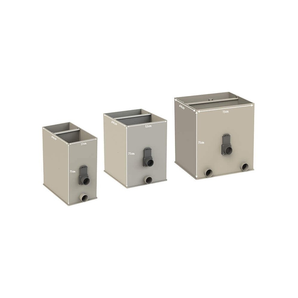 UltraSieve LOW viene fornito con una connessione da 2” ed adattatore filettato maschio. L'uscita dei rifiuti è dotata di una valvola a saracinesca da 90/110mm.