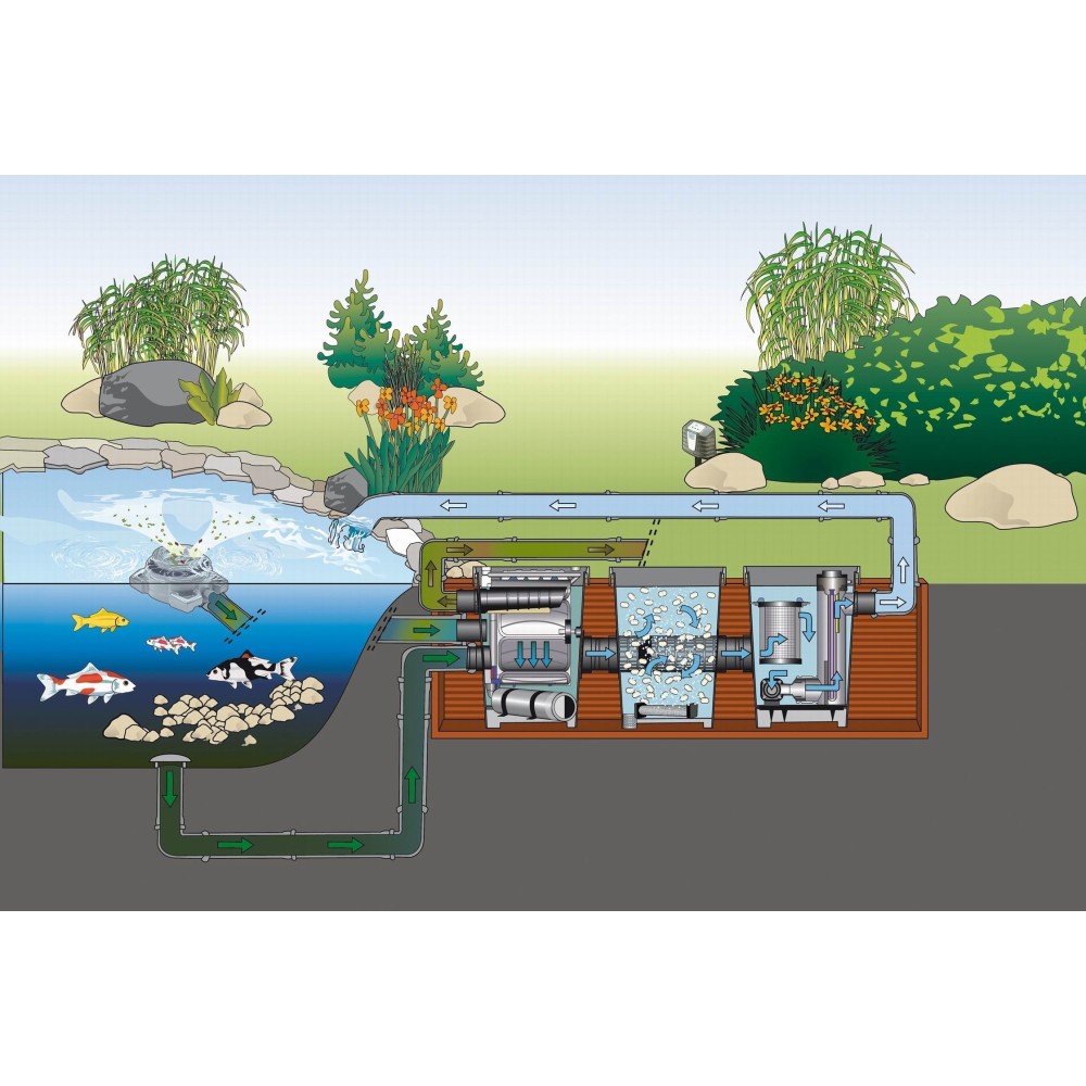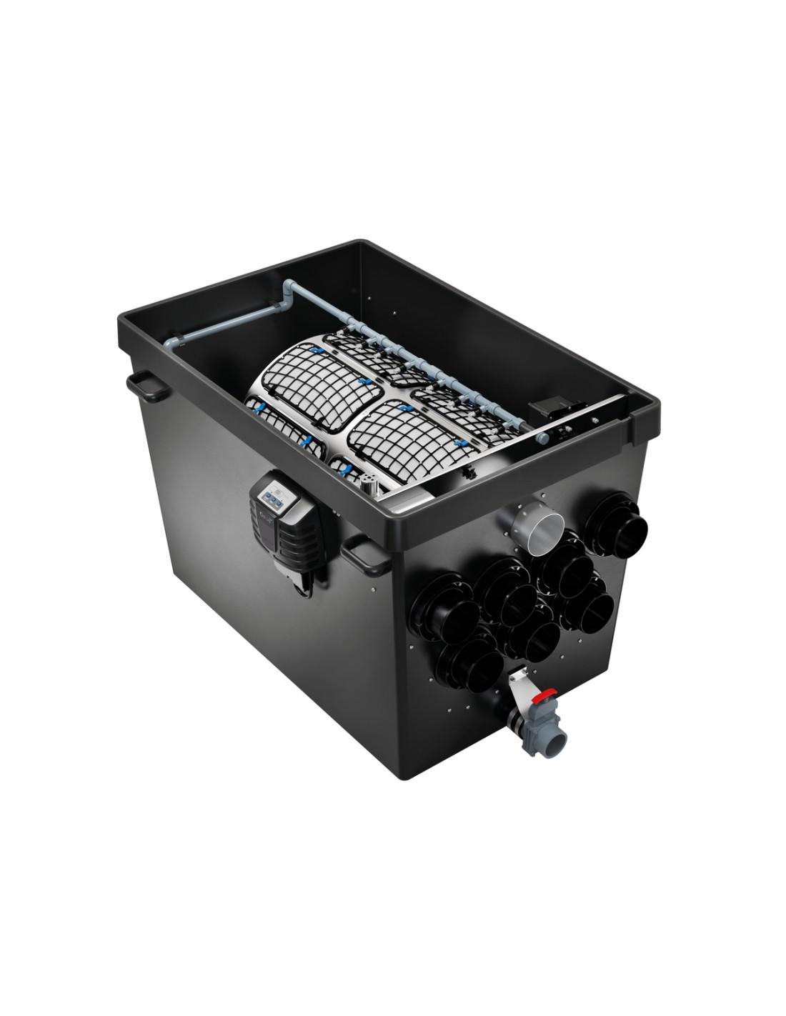 La tecnologia del filtro a tamburo è la soluzione migliore per koi pond dal grande volume, dove vi sia la necessità di effettuare un efficace filtraggio meccanico con una buona autonomia di esercizio e delle ottime performance.