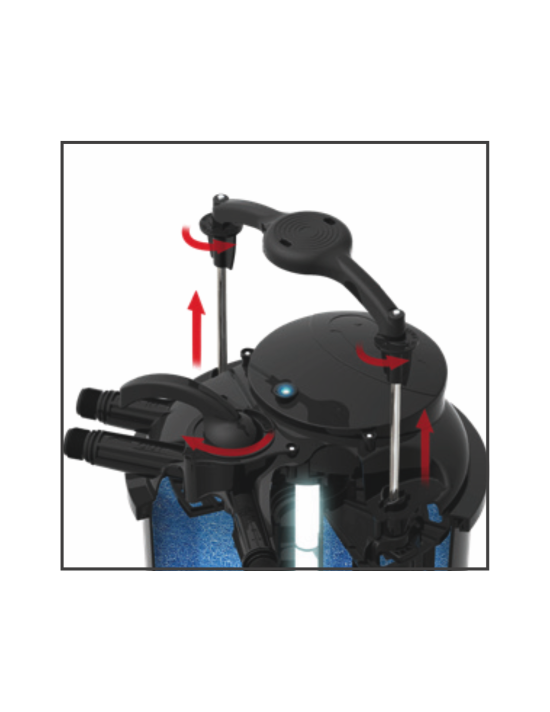 Può essere utilizzato come validissimo sistema di prefiltraggio meccanico prima di un filtro biologico: è dotato di un comparto spugne che effettua una pulizia efficace dell'acqua, inoltre è possibile pulire le spugne in maniera comoda ed efficiente tramite il comodo maniglione posto sul coperchio del filtro. E' sufficiente girare il selettore predisposto sulla posizione "clean", sbloccare il maniglione e muoverlo su e giù fino a completa pulizia. Questo semplice sistema rende veloce la pulizia periodica senza necessità di aprire il filtro e di sporcarsi o bagnarsi. La lampada UVC mantiene trasparente l'acqua neutralizzando le fastidiose alghe unicellulari.