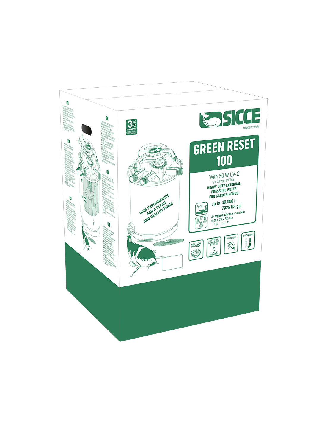 Kit Filtro a Pressione SICCE GREEN RESET 100 L + EKO POWER 12000 con UVC 2x25 watt - nuovo deviatore